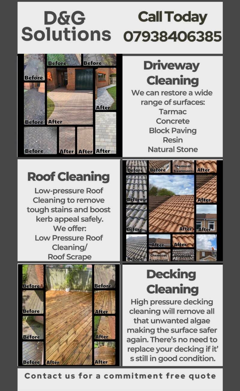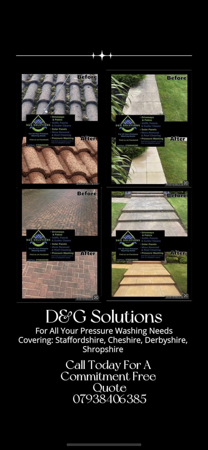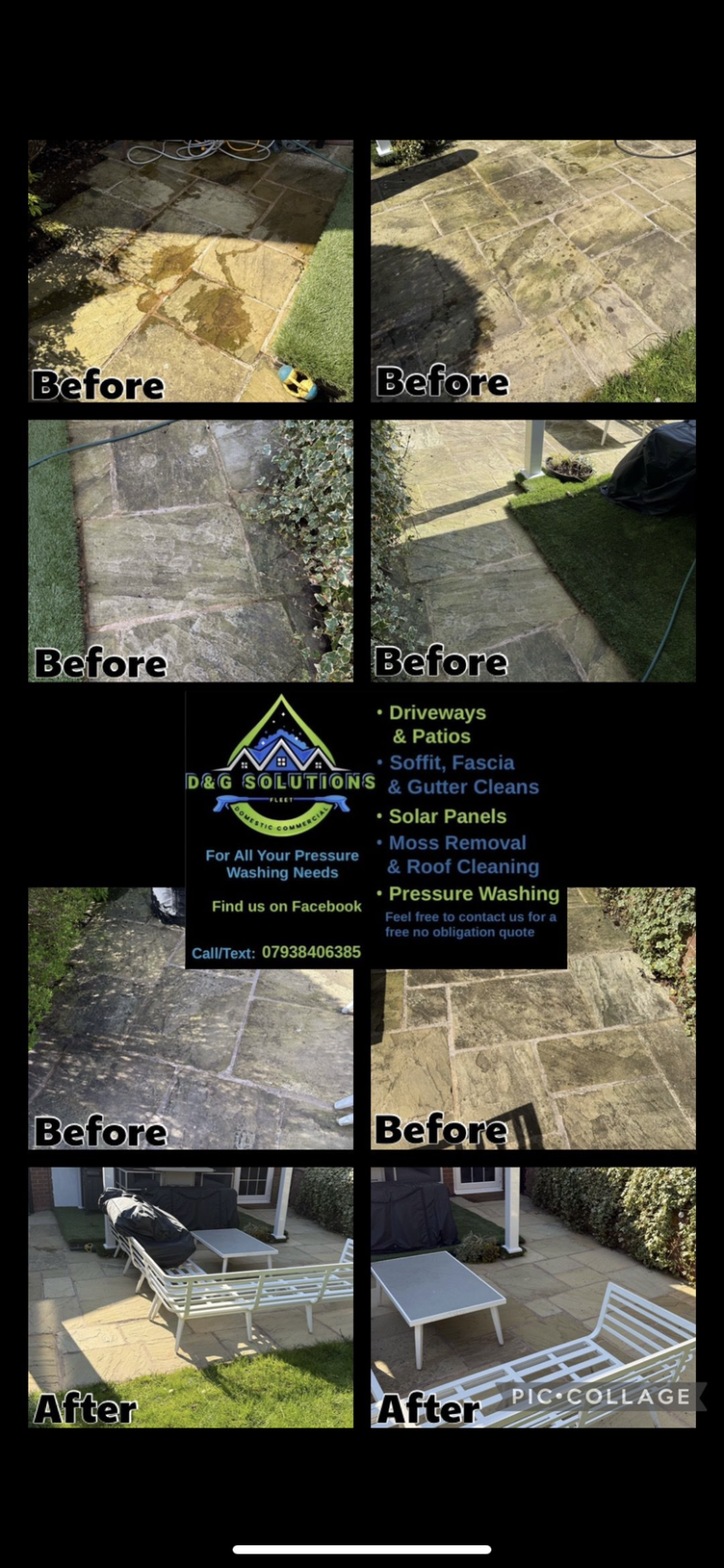 D & G Solutions For All Your Pressure Washing Needs Phone: 07938406385 Email: D-G-Solutions@hotmail.com