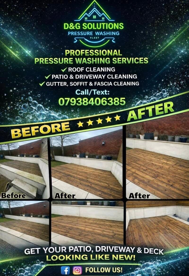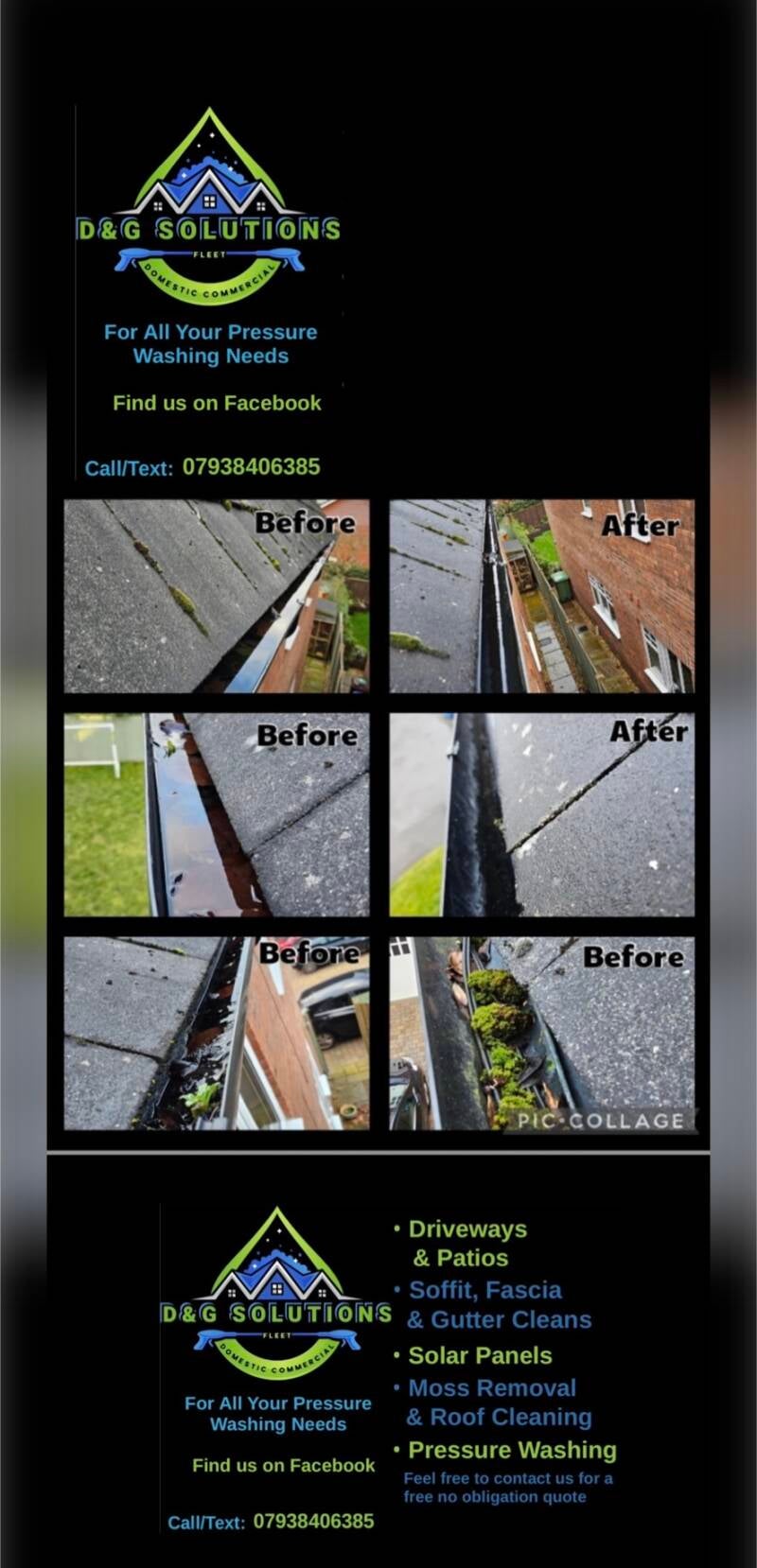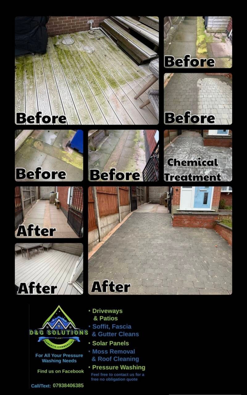 D & G Solutions For All Your Pressure Washing Needs Phone: 07938406385 Email: D-G-Solutions@hotmail.com